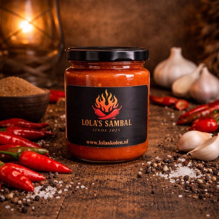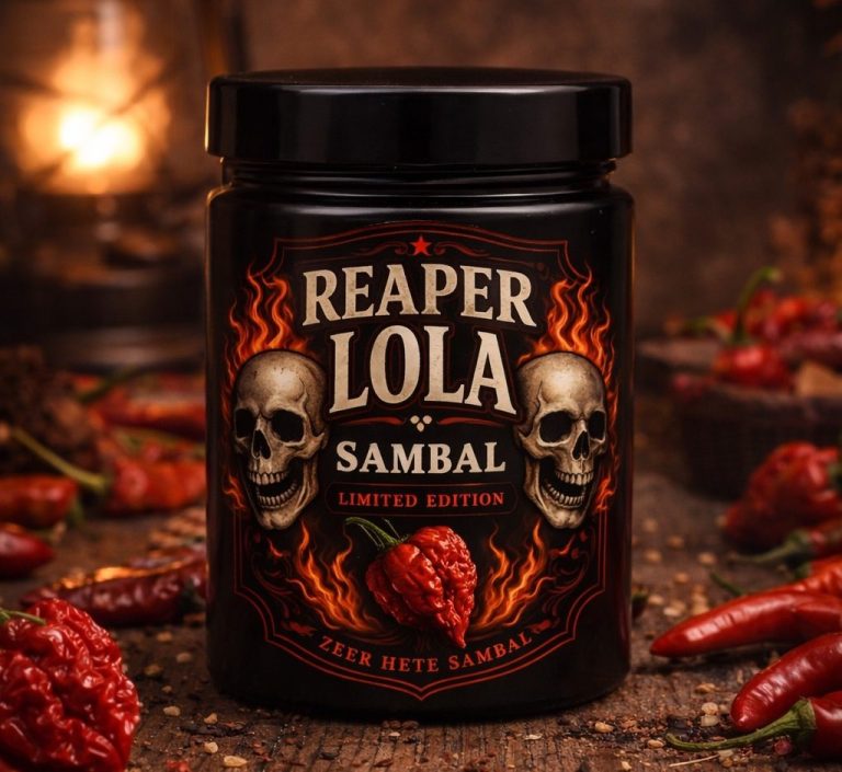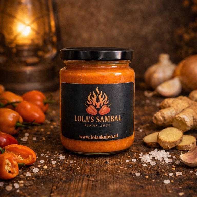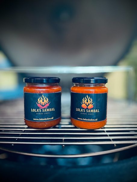 Ons unieke, zelf ontwikkelde, Vegan-proof recept voor een heerlijke zoete, warm-pittige en een hetere sambal die zich perfect laten combineren met onze andere specialiteiten. Vers gemaakt van onze eigen rode chili pepers en Rawit of Habanero pepers, geen kunstmatige toevoegingen en op basis van zonnebloemolie. De sambal wordt verkocht in een glazen luchtdicht afsluitbaar potje met 275 gram van onze heerlijke sambal. Nu verkrijgbaar voor €8,50 per potje of €15,- voor een combinatiedeal van twee potjes.